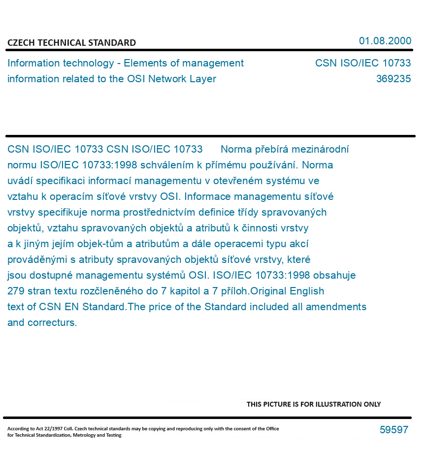 | Number of Standard: | CSN ISO/IEC 10733 |