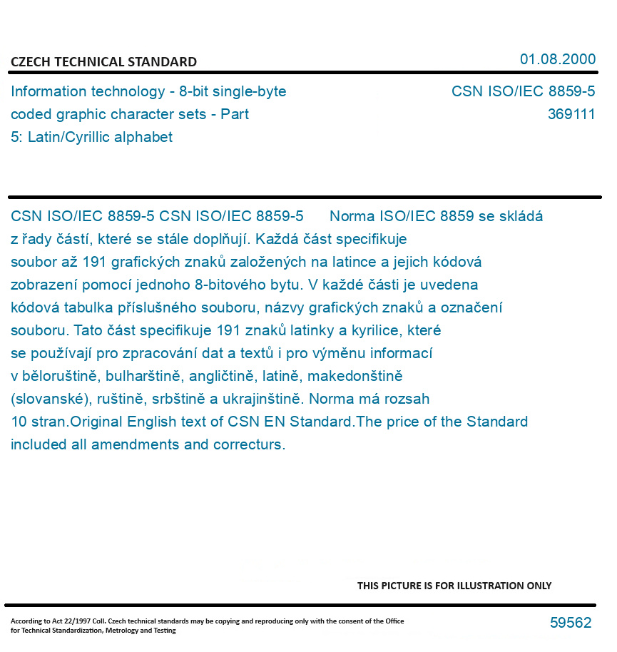 | Number of Standard: | CSN ISO/IEC 8859-5 |