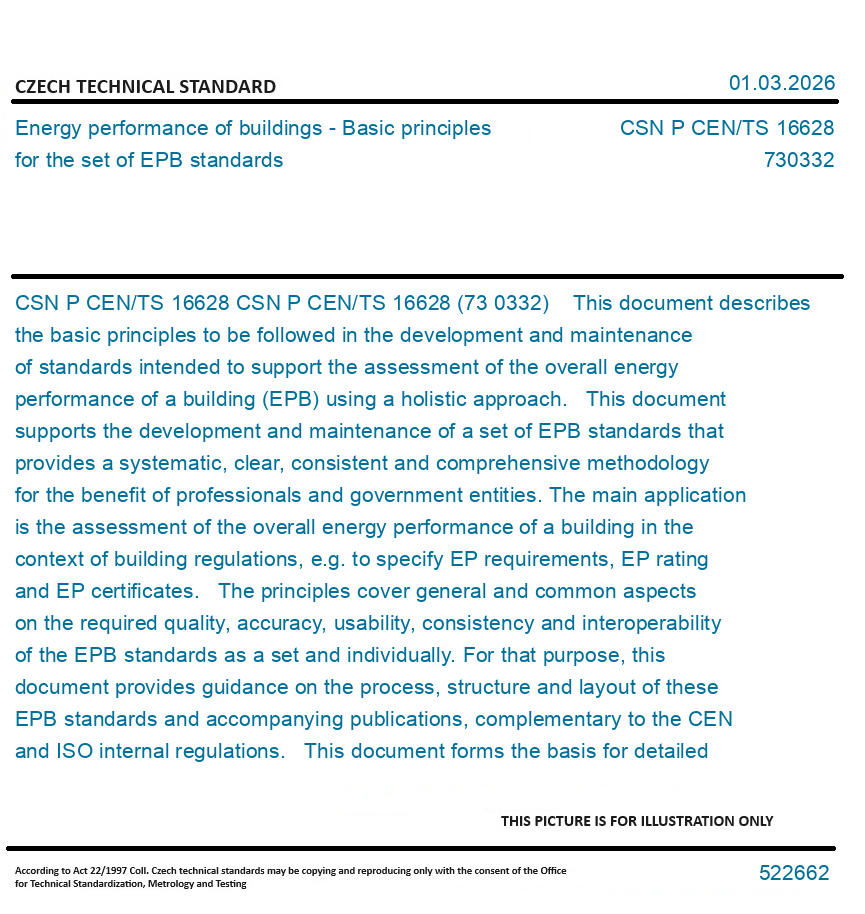 | Number of Standard: | CSN P CEN/TS 16628 |