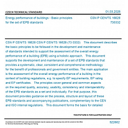 CSN P CEN/TS 16628 (73 0332) This document describes the basic principles to be followed in the development and maintenance of standards intended to support the assessment of the overall energy performance of a building (EPB) using a holistic approach. This document supports the development and maintenance of a set of EPB standards that provides a systematic, clear, consistent and comprehensive methodology for the benefit of professionals and government entities. The main application is the assessment of the overall energy performance of a building in the context of building regulations, e.g. to specify EP requirements, EP rating and EP certificates. The principles cover general and common aspects on the required quality, accuracy, usability, consistency and interoperability of the EPB standards as a set and individually. For that purpose, this document provides guidance on the process, structure and layout of these EPB standards and accompanying publications, complementary to the CEN and ISO internal regulations. This document forms the basis for detailed technical rules given in CEN/TS 16629, in the overarching EPB standard, EN ISO 52000-1:2017, and in supporting documents.