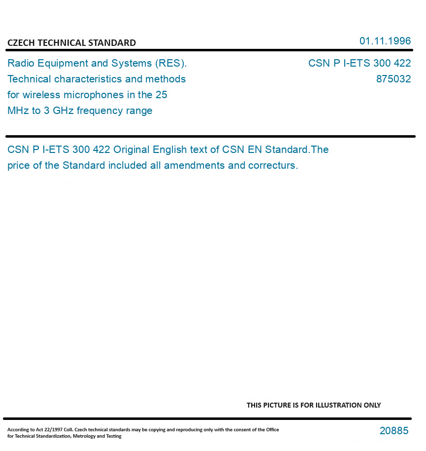 | Number of Standard: | CSN P I-ETS 300 422 |