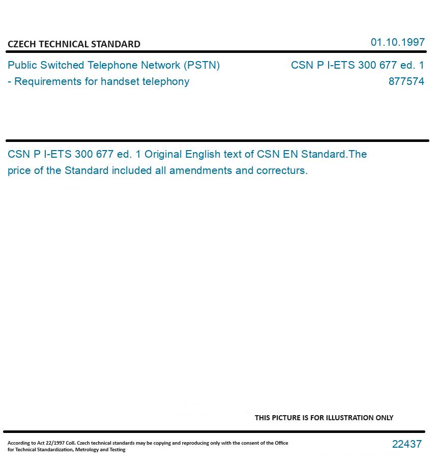 | Number of Standard: | CSN P I-ETS 300 677 ed. 1 |