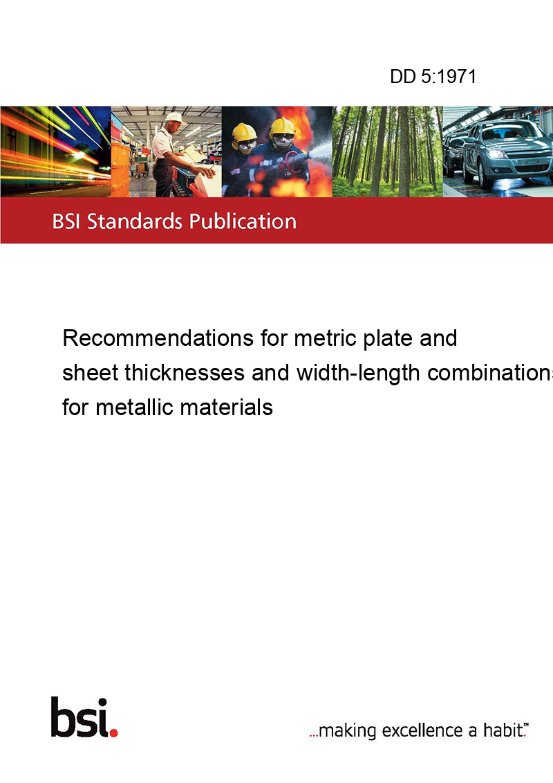 This standard DD 5:1971 Recommendations for metric plate and sheet thicknesses and width-length combinations for metallic materials is classified in these ICS categories:
