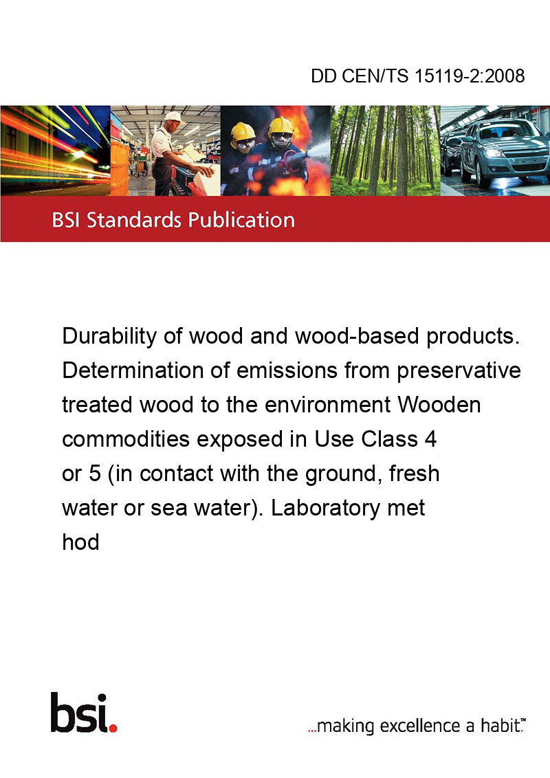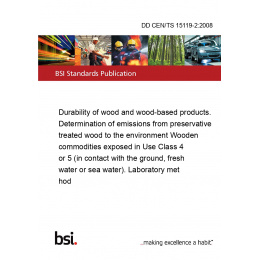 Durability of wood and wood-based products. Determination of emissions from preservative treated wood to the environment Wooden commodities exposed in Use Class 4 or 5 (in contact with the ground, fresh water or sea water). Laboratory method