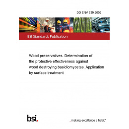 This standard DD ENV 839:2002 Wood preservatives. Determination of the protective effectiveness against wood destroying basidiomycetes. Application by surface treatment is classified in these ICS categories: