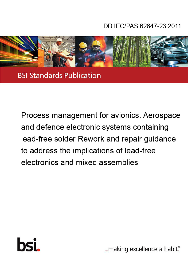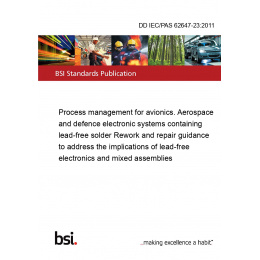 IEC/PAS 62647-23:2011(E) provides technical background, procurement guidance, engineering procedures, and guidelines to assist organizations reworking/repairing aerospace and high performance electronic systems, whether they were assembled or previously reworked/repaired using traditional alloys such as SnPb or Pb-free alloys, or a combination of both solders and surface finishes.