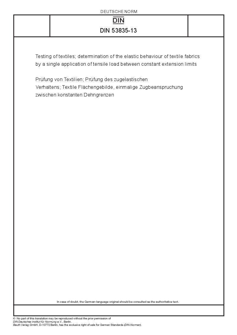 | Name: | Testing of textiles; determination of the elastic behaviour of textile fabrics by a single application of tensile load between constant extension limits |