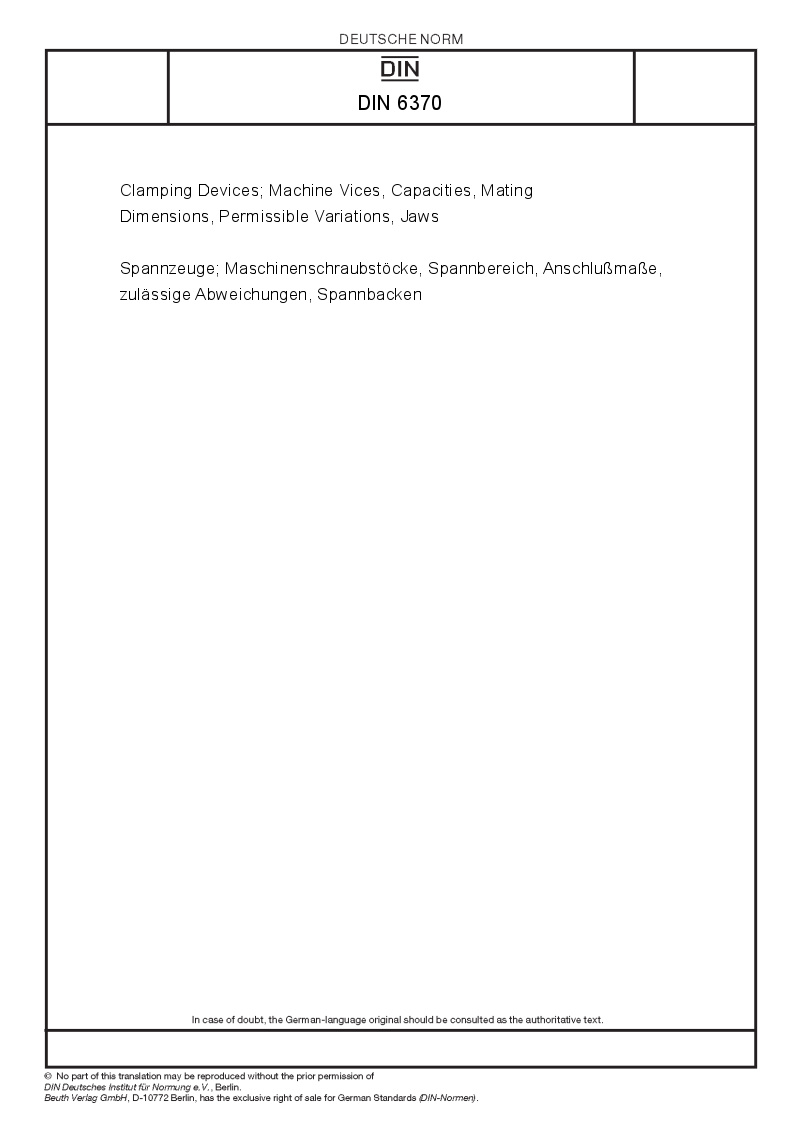 DIN 6370 Clamping Devices; Machine Vices, Capacities, Mating Dimensions, Permissible Variations, JawsNot available online - contact us!