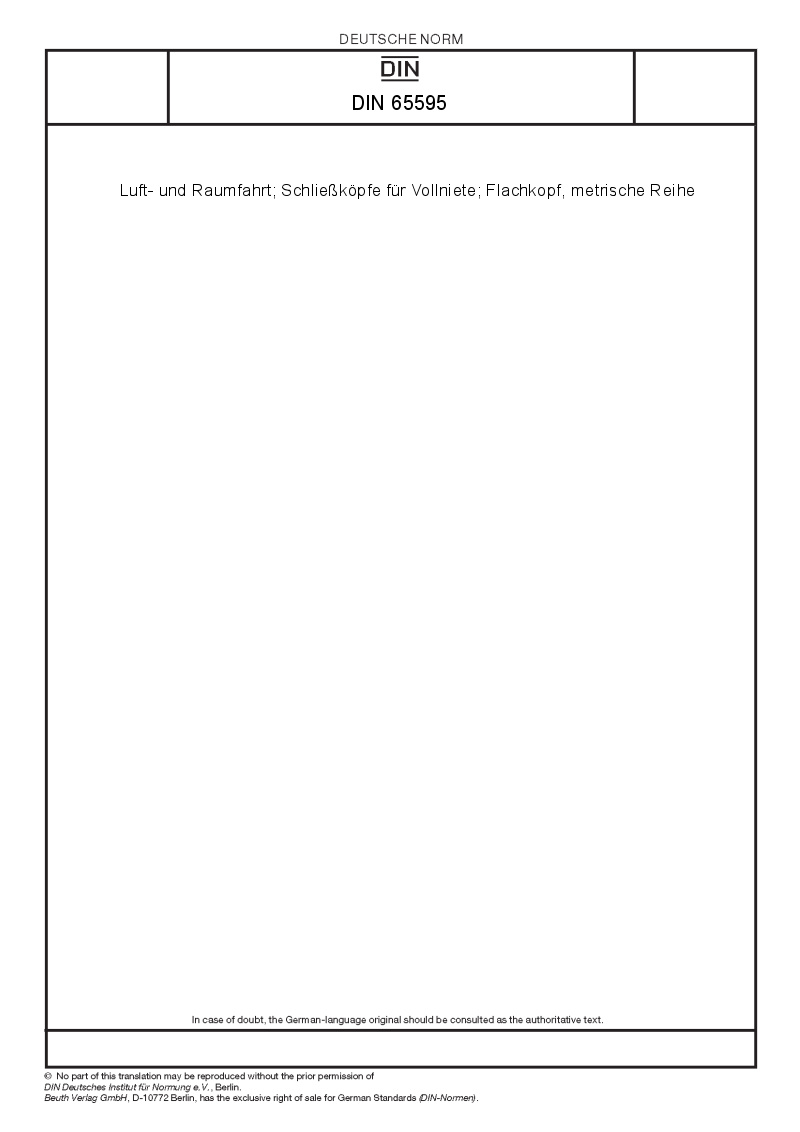 DIN 65595 Luft- und Raumfahrt; Schließköpfe für Vollniete; Flachkopf, metrische ReiheNot available online - contact us!