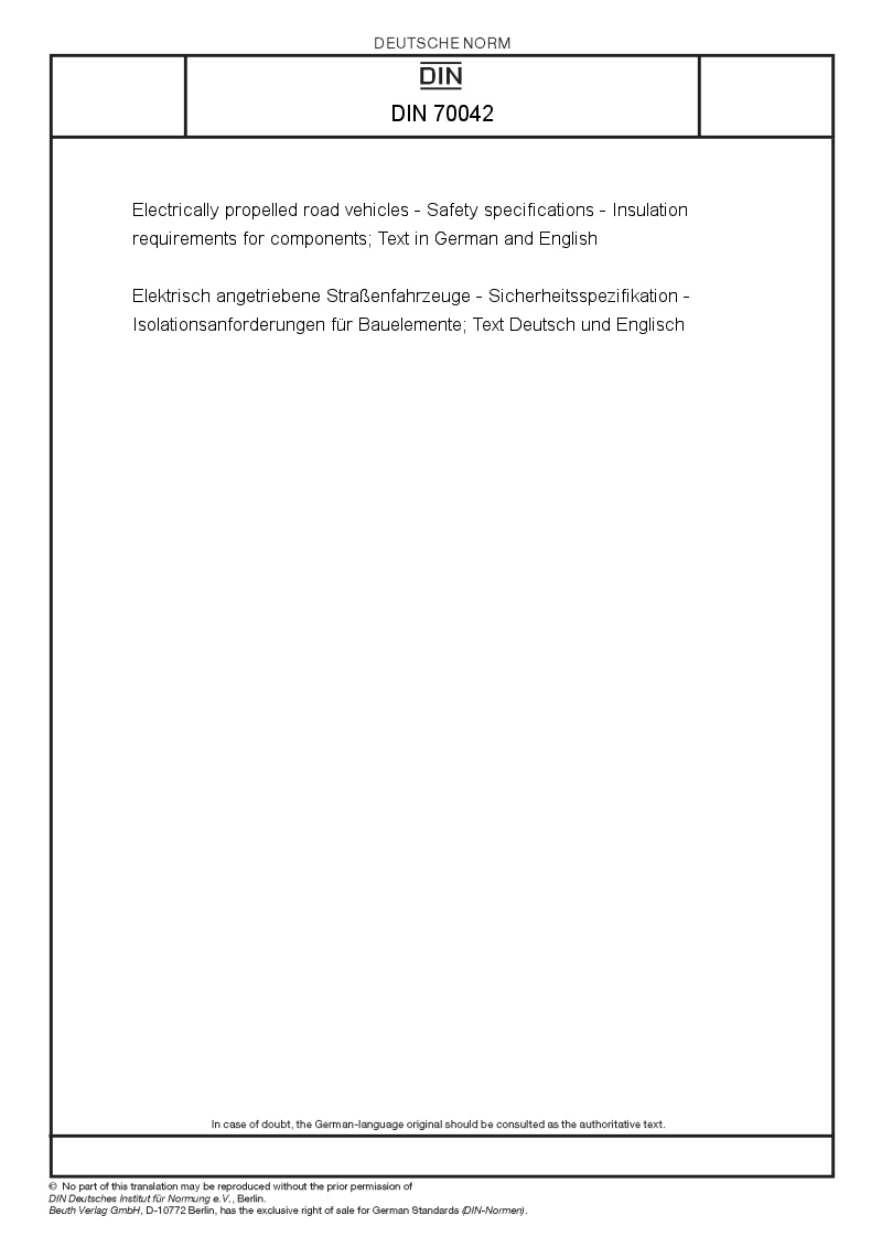 | Name: | Electrically propelled road vehicles - Safety specifications - Requirements for insulation-bridging components and insulation requirements for components; Text in German and English |