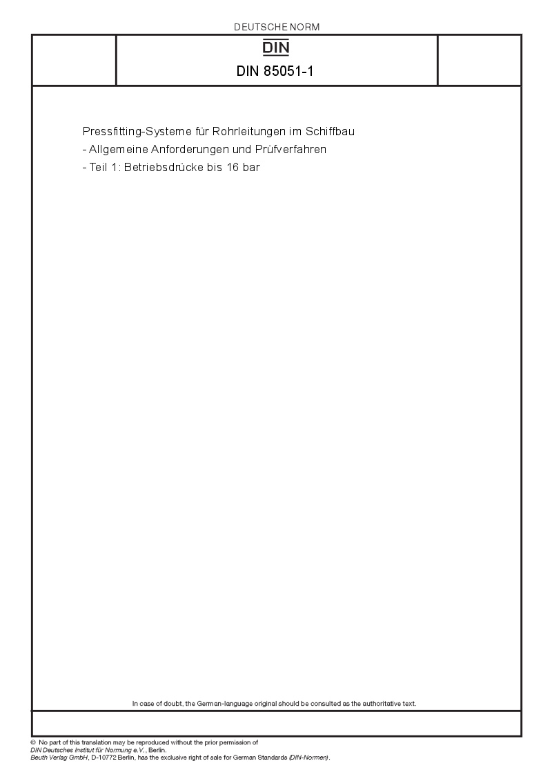 | Name: | Pressfitting systems for pipes for use in shipbuilding - General requirements and test methods - Part 1: Operating pressures up to 16 bar |