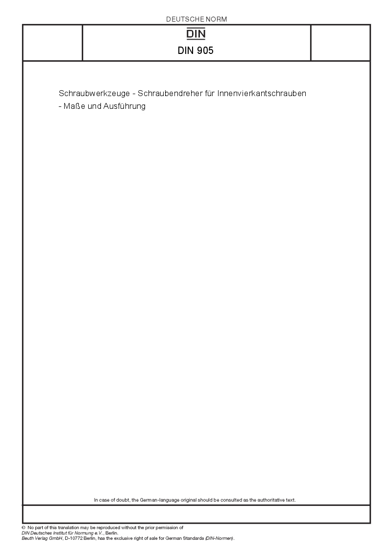 DIN 905 Schraubwerkzeuge - Schraubendreher für Innenvierkantschrauben - Maße und Ausführungin stockReleased: 2009-07