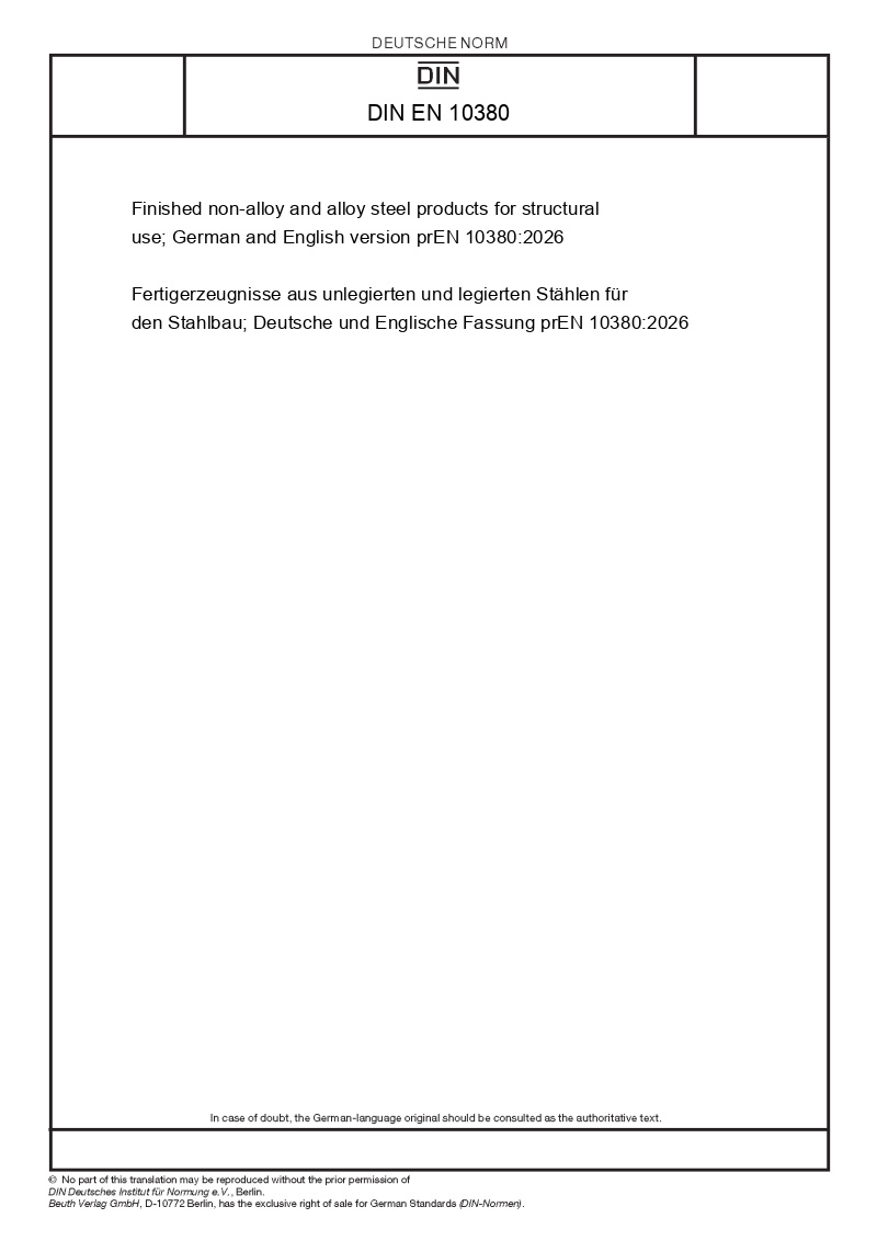 | Name: | Finished non-alloy and alloy steel products for structural use; German and English version prEN 10380:2026 |