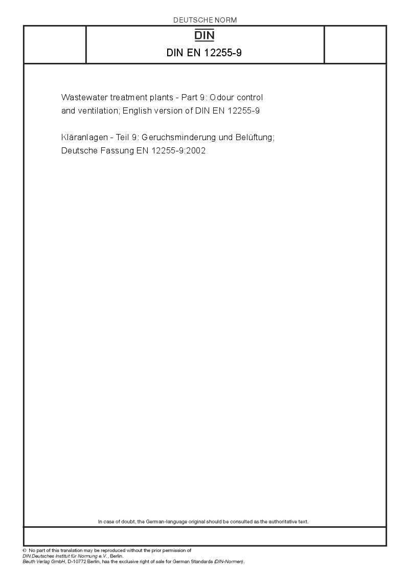 | Name: | Wastewater treatment plants - Part 9: Odour control and ventilation; English version of DIN EN 12255-9 |