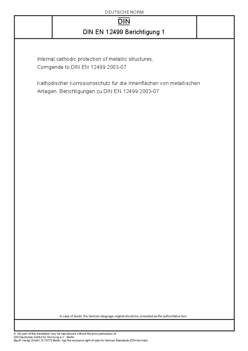 | Name: | Internal cathodic protection of metallic structures, Corrigenda to DIN EN 12499:2003-07 |