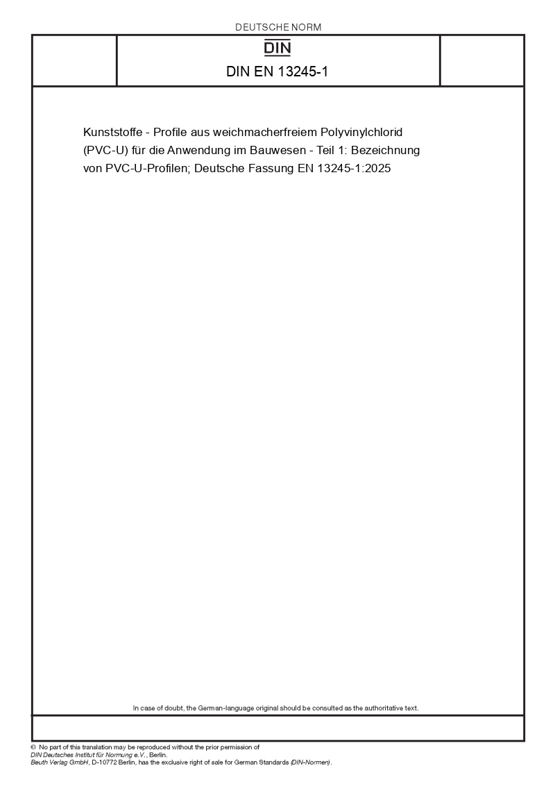 | Name: | Plastics - Unplasticized poly(vinyl chloride) (PVC-U) profiles for building applications - Part 1: Designation of PVC-U profiles |