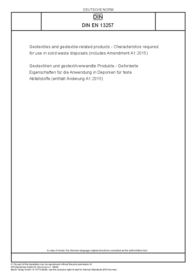 | Name: | Geotextiles and geotextile-related products - Characteristics required for use in solid waste disposals |