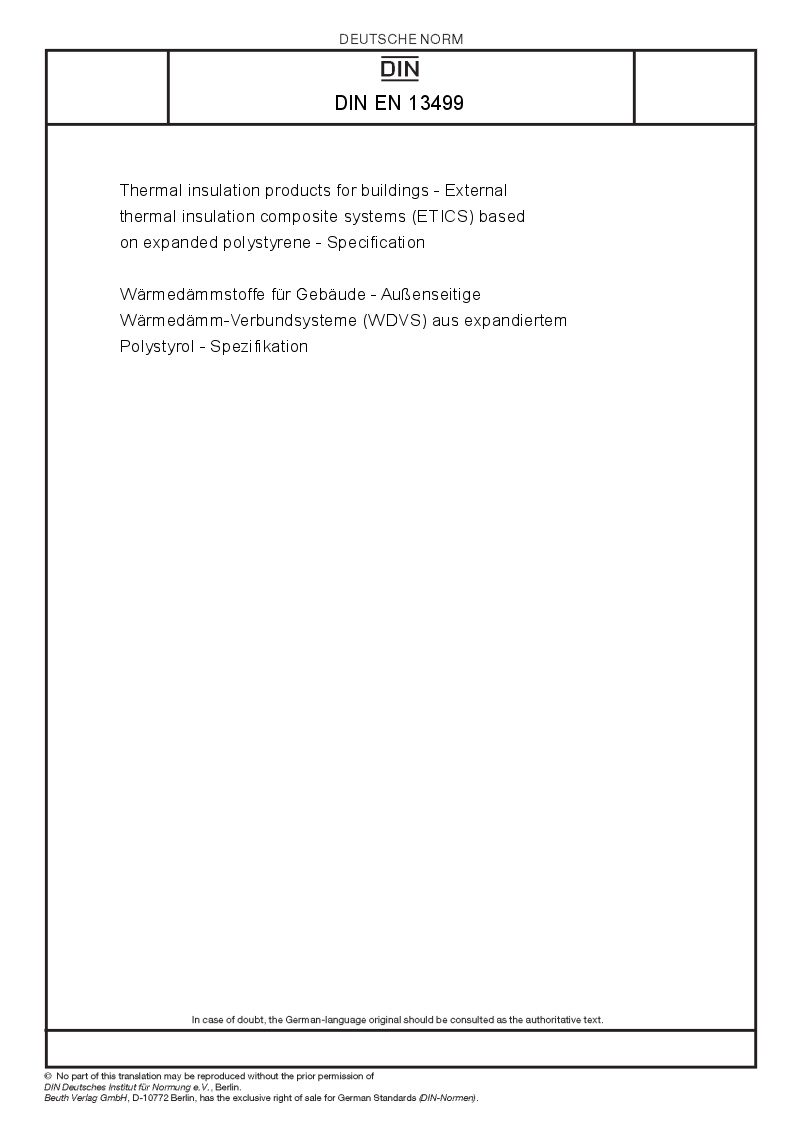 | Name: | Thermal insulation products for buildings - External thermal insulation composite systems (ETICS) based on expanded polystyrene - Specification |