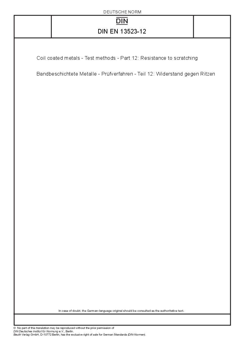 | Name: | Coil coated metals - Test methods - Part 12: Resistance to scratching |