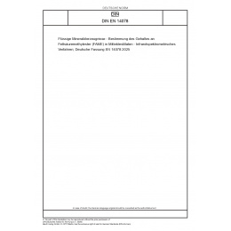 | Name: | Flüssige Mineralölerzeugnisse - Bestimmung des Gehaltes an Fettsäuremethylester (FAME) in Mitteldestillaten - Infrarotspektrometrisches Verfahren; Deutsche Fassung EN 14078:2025 |