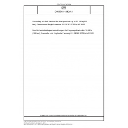 >DIN Standards>DIN EN 14382/A1 Gas-Sicherheitsabsperreinrichtungen für Eingangsdrücke bis 10 MPa (100 bar); Deutsche und Englische Fassung EN 14382:2019/prA1:2022