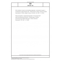 | Name: | Self-contained closed-circuit breathing apparatus, compressed oxygen or compressed oxygen/nitrogen type - Requirements, testing, marking (includes Amendment A1:2000); English version of DIN EN 145:1997 + A1:2000 |