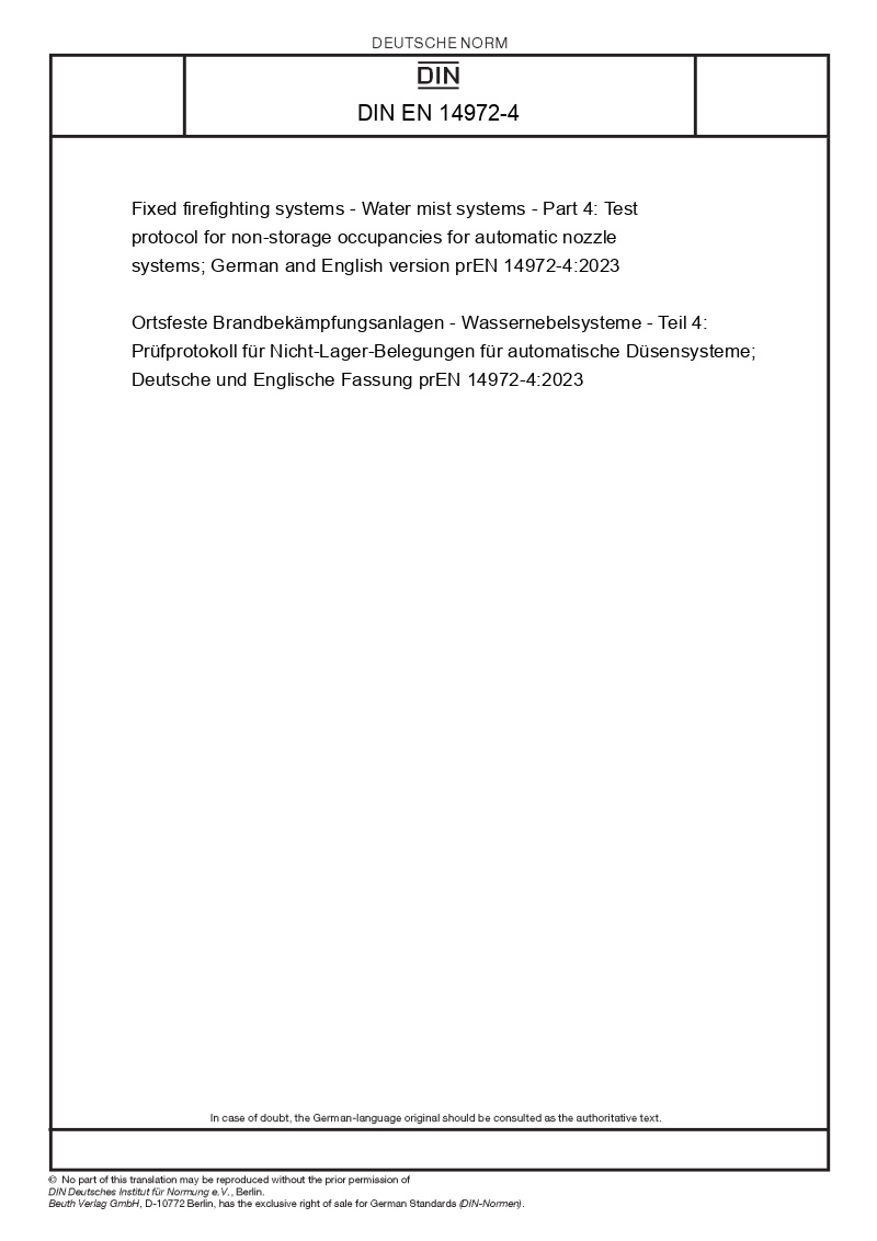 | Name: | Fixed firefighting systems - Water mist systems - Part 4: Test protocol for non-storage occupancies for automatic nozzle systems |