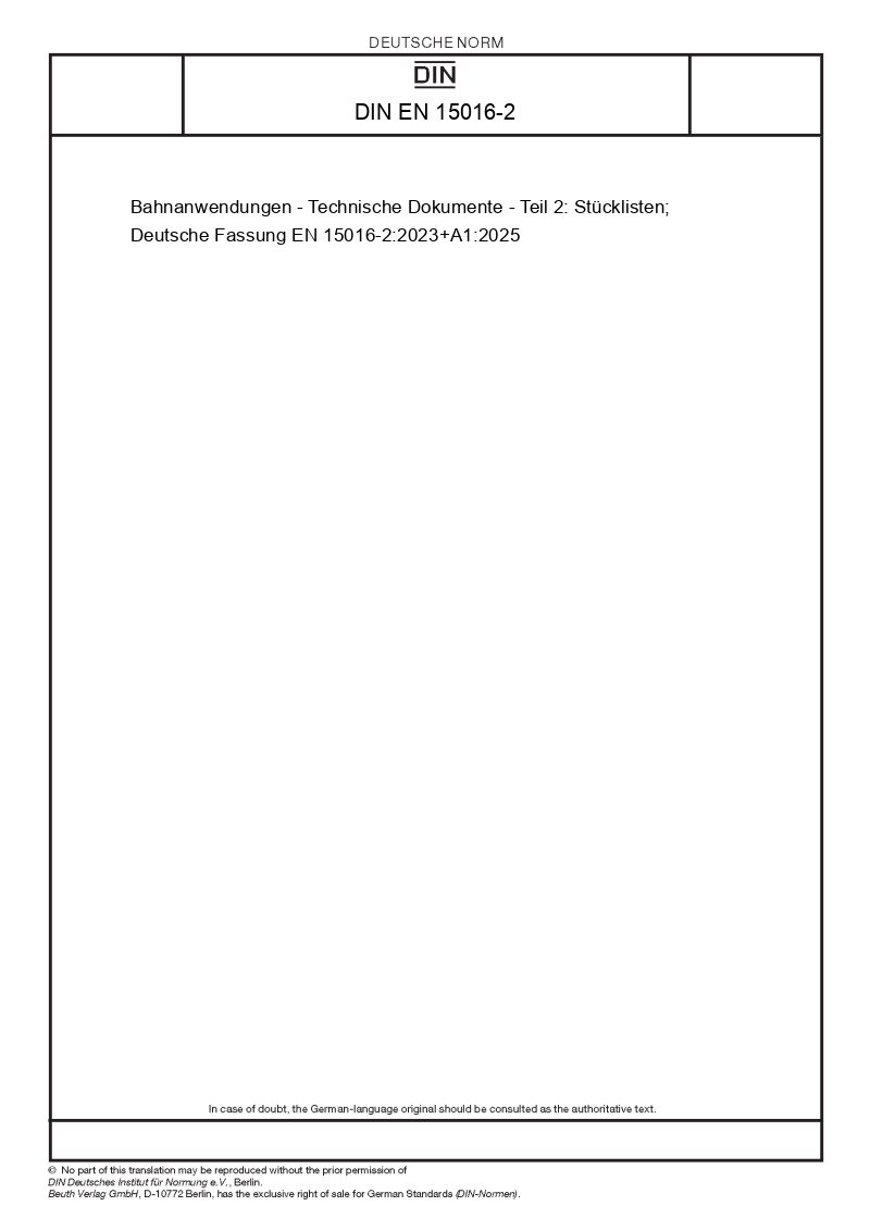 Bahnanwendungen - Technische Dokumente - Teil 2: Stücklisten (enthält Änderung A1:2025)