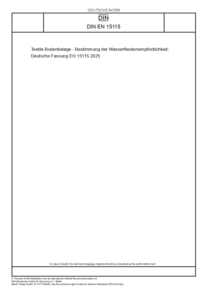 | Name: | Textile floor coverings - Determination of sensitivity to spilled water |