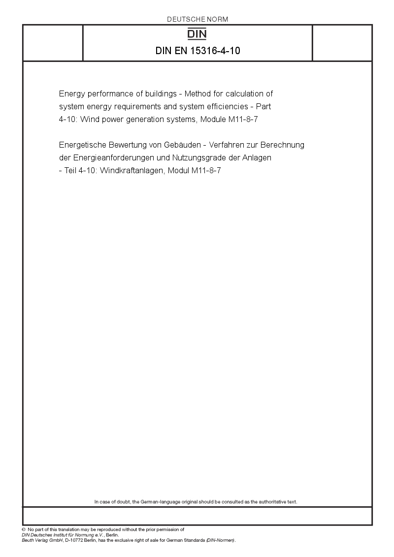 | Name: | Energy performance of buildings - Method for calculation of system energy requirements and system efficiencies - Part 4-10: Wind power generation systems, Module M11-8-7 |