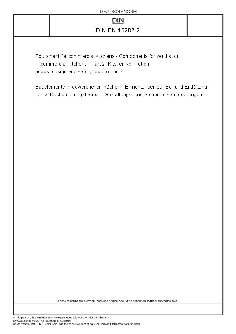 | Name: | Equipment for commercial kitchens - Components for ventilation in commercial kitchens - Part 2: Kitchen ventilation hoods; design and safety requirements |