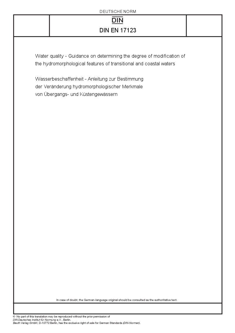 | Name: | Water quality - Guidance on determining the degree of modification of the hydromorphological features of transitional and coastal waters |