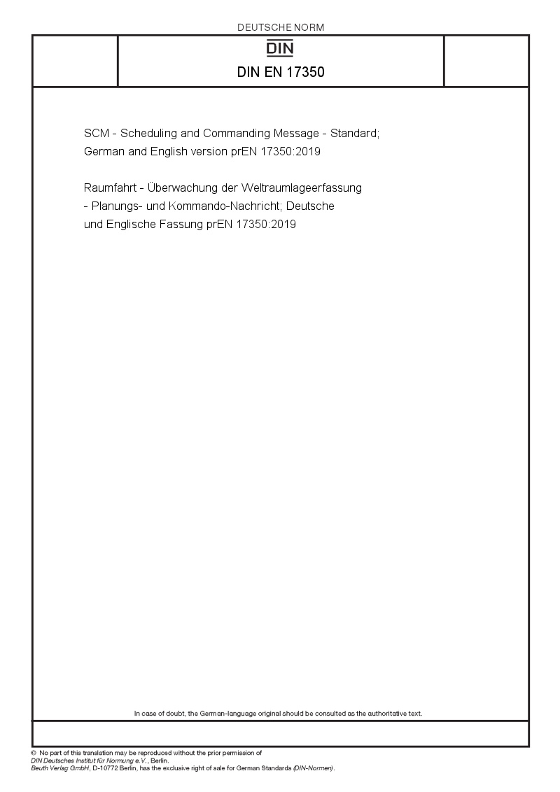 DIN EN 17350 SCM - Scheduling and Commanding Message - Standardin stockReleased: 2021-12