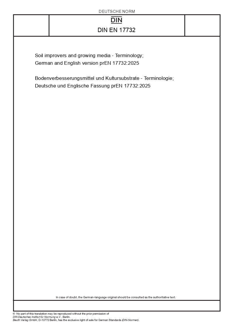 | Name: | Soil improvers and growing media - Terminology; German and English version prEN 17732:2025 |