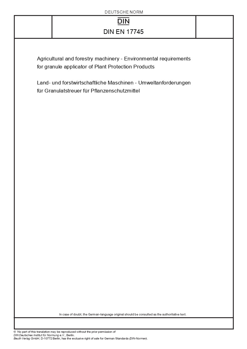 | Name: | Agricultural and forestry machinery - Environmental requirements for granule applicator of Plant Protection Products |