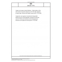 | Name: | Organic and organo-mineral fertilizers - Determination of the total content of specific elements by ICP-AES after digestion by aqua regia; German and English version prEN 17770:2026 |