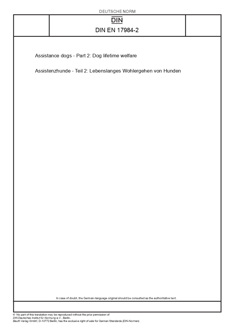 | Name: | Assistance dogs - Part 2: Dog lifetime welfare |