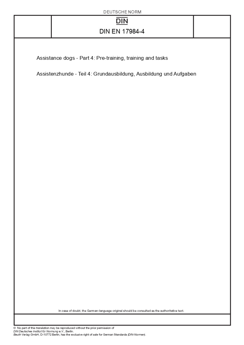 | Name: | Assistance dogs - Part 4: Pre-training, training and tasks |