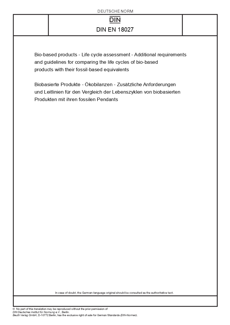 Name: | Bio-based products - Life cycle assessment - Additional requirements and guidelines for comparing the life cycles of bio-based products with their fossil-based equivalents |