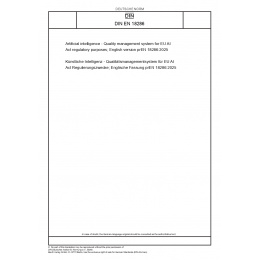 DIN EN 18286 Artificial intelligence - Quality management system for EU AI Act regulatory purposes; English version prEN 18286:2025in stockReleased: 2025-12