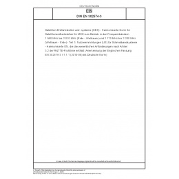 | Name: | Satelliten-Erdfunkstellen und -systeme (SES) - Harmonisierte EN für Satellitenerdfunkstellen (MES) für MSS zum Betrieb in den Frequenzbändern 1 980 MHz bis 2 010 MHz (Erde - Weltraum) und 2 170 MHz bis 2 200 MHz (Weltraum - Erde), die die wesentlichen Anforderungen nach Artikel 3.2 der EU-Richtlinie 2014/53/EU enthält - Teil 3: Nutzereinrichtungen (UE) für Schmalbandsysteme (Anerkennung der Englischen Fassung EN 302 574-3 V2.1.1 (2016-06) als Deutsche Norm) |