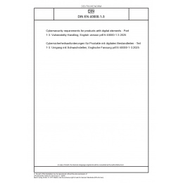 | Name: | Cybersecurity requirements for products with digital elements - Part 1-3: Vulnerability Handling; English version prEN 40000-1-3:2025 |