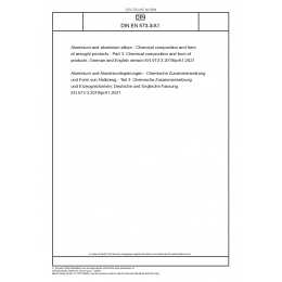 >DIN Standards>DIN EN 573-3/A1 Aluminium und Aluminiumlegierungen - Chemische Zusammensetzung und Form von Halbzeug - Teil 3: Chemische Zusammensetzung und Erzeugnisformen; Deutsche und Englische Fassung EN 573-3:2019/prA1:2021