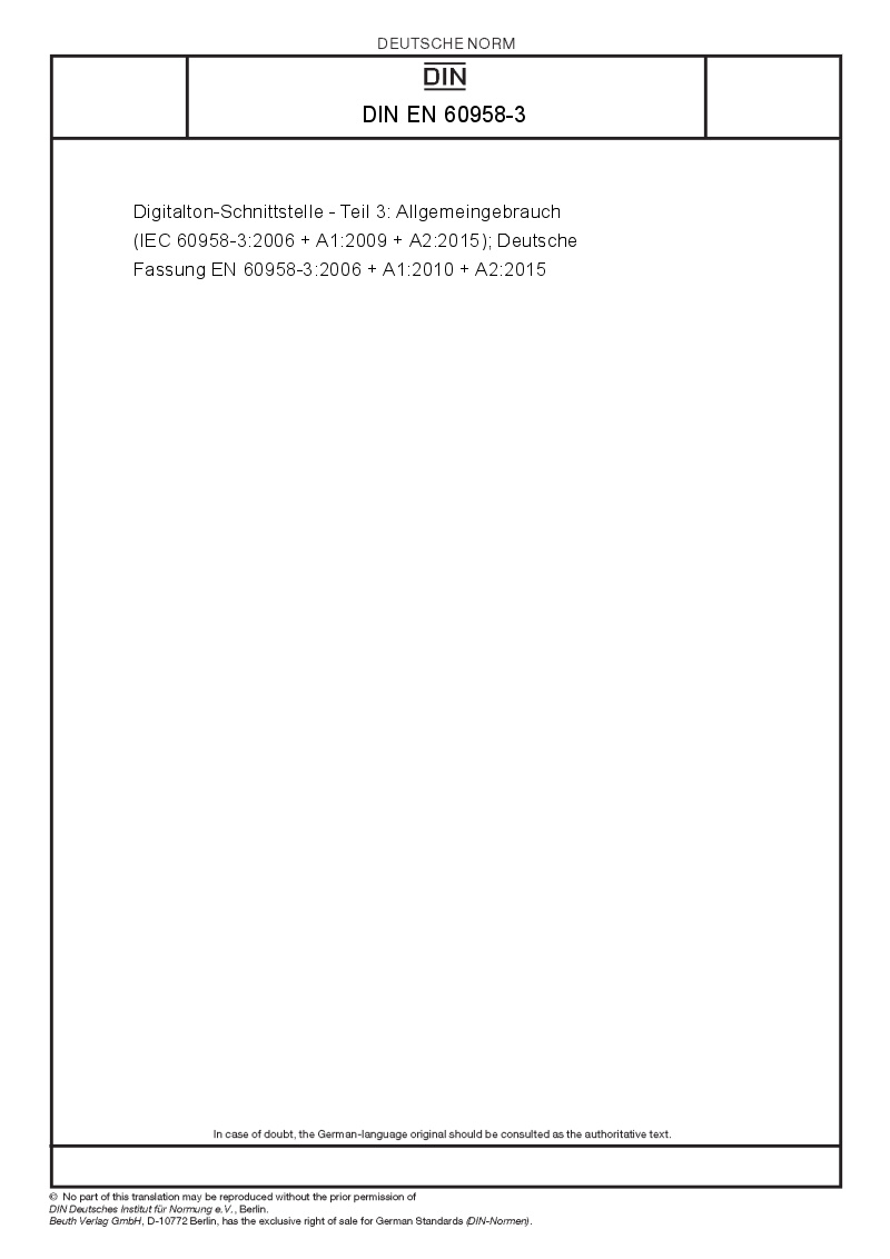 | Name: | Digitalton-Schnittstelle - Teil 3: Allgemeingebrauch (IEC 60958-3:2006 + A1:2009 + A2:2015); Deutsche Fassung EN 60958-3:2006 + A1:2010 + A2:2015 |
