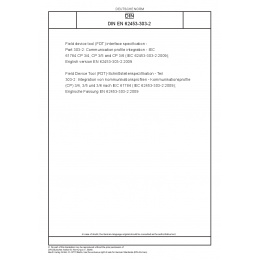 | Name: | Field device tool (FDT) interface specification - Part 303-2: Communication profile integration - IEC 61784 CP 3/4, CP 3/5 and CP 3/6 (IEC 62453-303-2:2009); English version EN 62453-303-2:2009 |