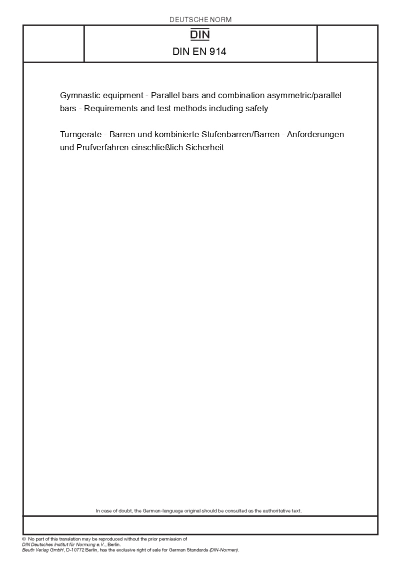 | Name: | Gymnastic equipment - Parallel bars and combination asymmetric/parallel bars - Requirements and test methods including safety |