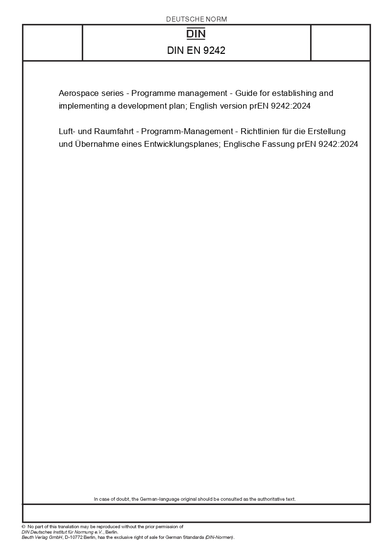 | Name: | Aerospace series - Programme management - Guide for establishing and implementing a development plan; English version prEN 9242:2024 |