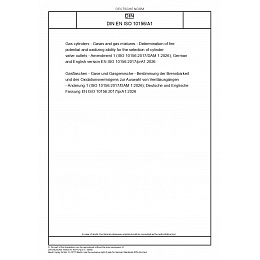 | Name: | Gas cylinders - Gases and gas mixtures - Determination of fire potential and oxidizing ability for the selection of cylinder valve outlets - Amendment 1 (ISO 10156:2017/DAM 1:2026); German and English version EN ISO 10156:2017/prA1:2026 |