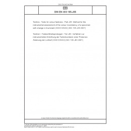 | Name: | Textiles - Tests for colour fastness - Part J05: Method for the instrumental assessment of the colour inconstancy of a specimen with change in illuminant (CMCCON02) (ISO 105-J05:2007) |