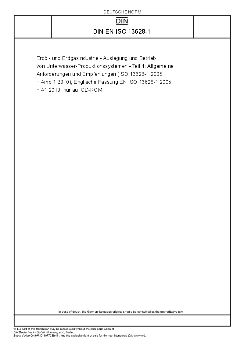 | Name: | Oil and gas industries including low carbon energy - Design and operation of subsea production systems - Part 1: General requirements and recommendations (ISO 13628-1:2025); English version EN ISO 13628-1:2025 |